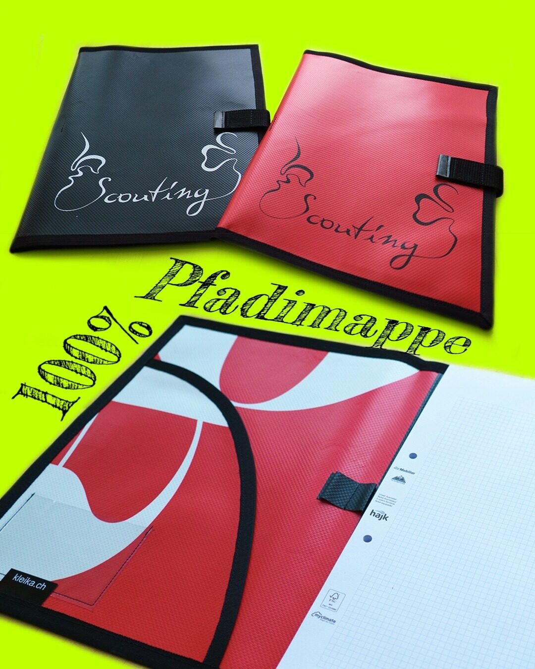 Kennst du das Gefühl: Du leitest in einem Lager und bist wieder einmal auf der Suche nach deinen Unterlagen? Die Pfadimappe löst dieses Problem! Sie ist die ideale Begleitung in Lagern, Ausbildungskursen, an Höcks oder während der Schule und bietet Platz für einen A4-Block, Stifte, ein iPad und alle deine Pfadiunterlagen!