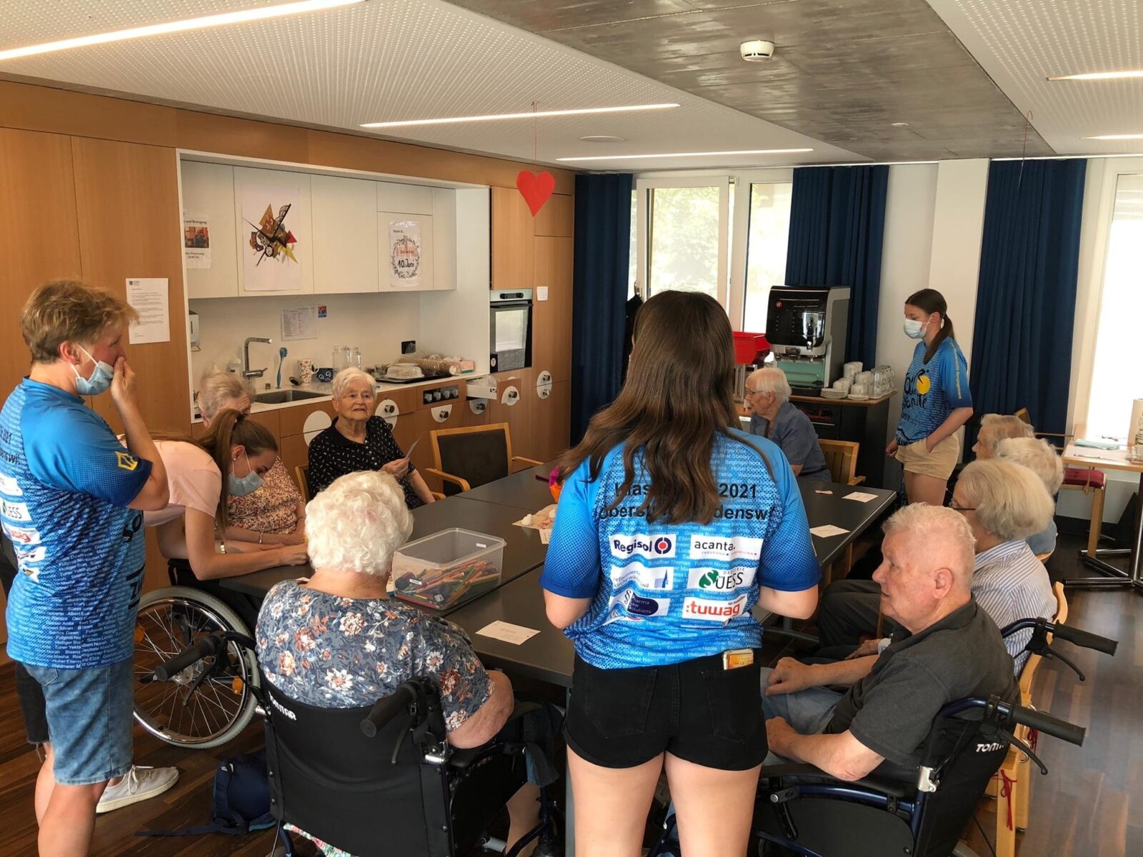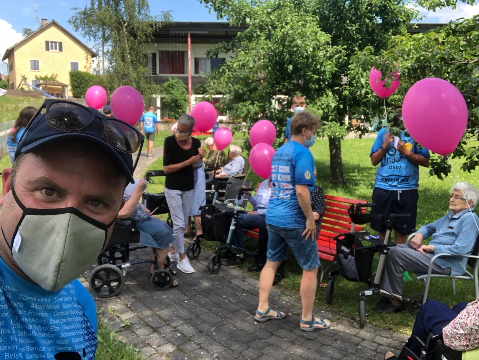 Um bei ihrer Velo-Abschlussreise mit der Bevölkerung in Kontakt zu treten, organisierten Schüler*innen einer Zürcher Schule verschiedene Besuche in Altersheimen und Spitälern. Sieüberraschten die Angestellten mit kleinen Znünisäckli und die Bewohnenden mit einem gemeinsamen Ballonwettbewerb und Gesprächen.