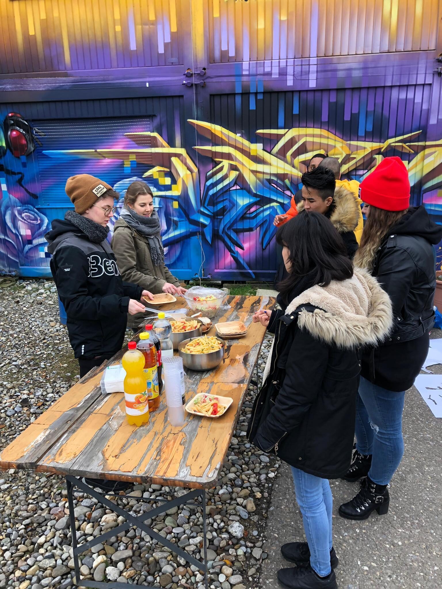 Jugendliche mit und ohne Fluchterfahrung haben sich im www.jugisternen.ch zu Graffiti-Workshops getroffen. Als Abschluss besprayte die Gruppe einen Foodtruck. Das Projekt wurde von drei jungen Erwachsenen, mit Unterstützung der Jugendarbeit, ins Leben gerufen und umgesetzt. Der Club Konkret finanzierte das Material.