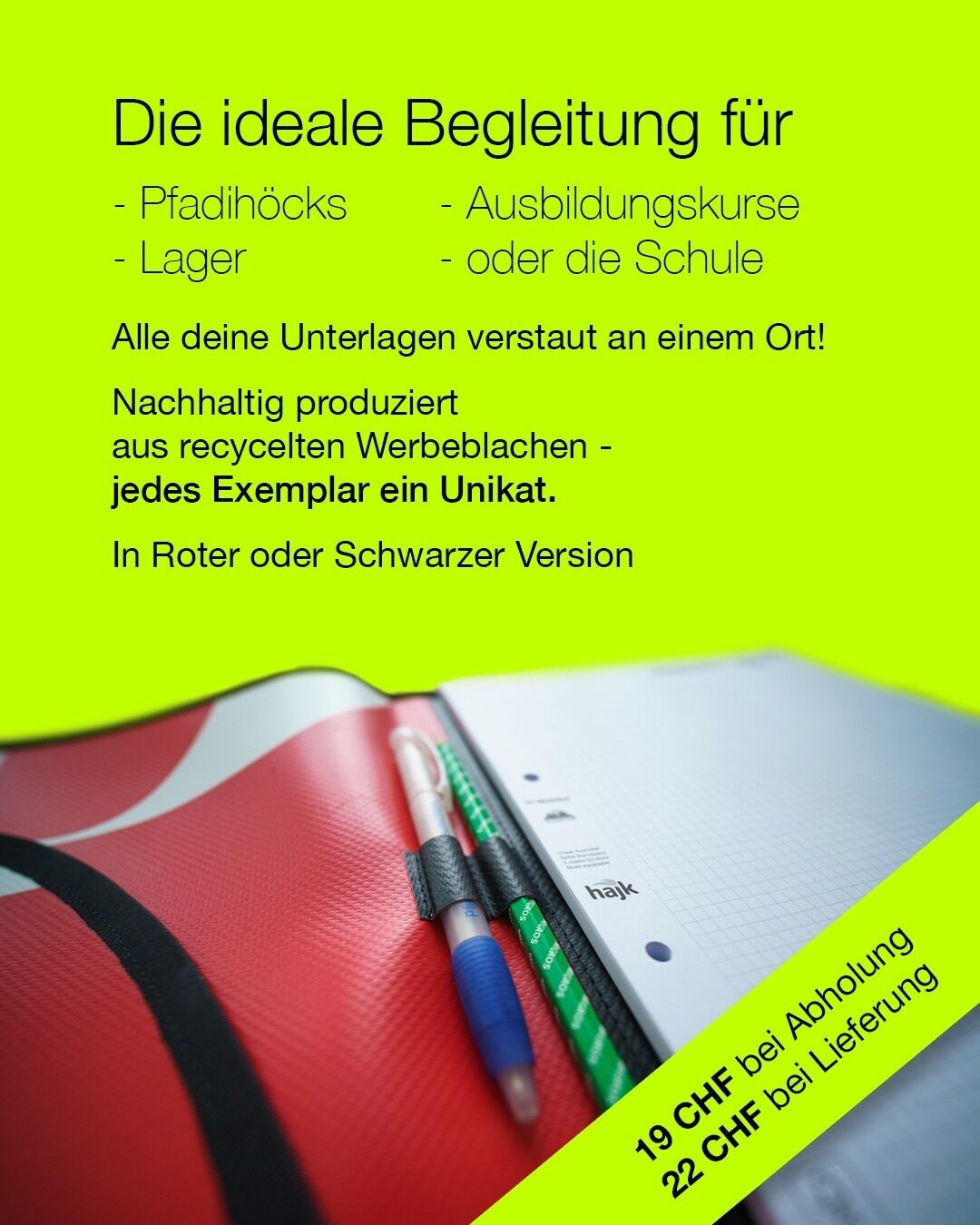 Die Mappe aus robusten, recycelten Werbeblachen für jeden Höck!